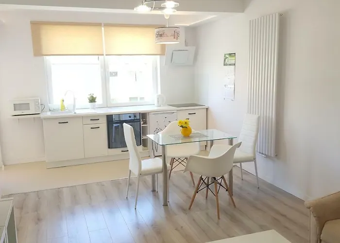 Eine Küchenzeile bietet eine Mikrowelle, einen Wasserkocher und einen Kühlschrank für die Selbstverpflegung. Die Gäste werden Gerichte der europäischen Küche im Restaurant Tawerna Portowa genießen, das nur 17 Fußminuten von hier entfernt liegt. Die Bushaltestelle Ustka / Port liegt in einer Entfernung von 10 Gehminuten.